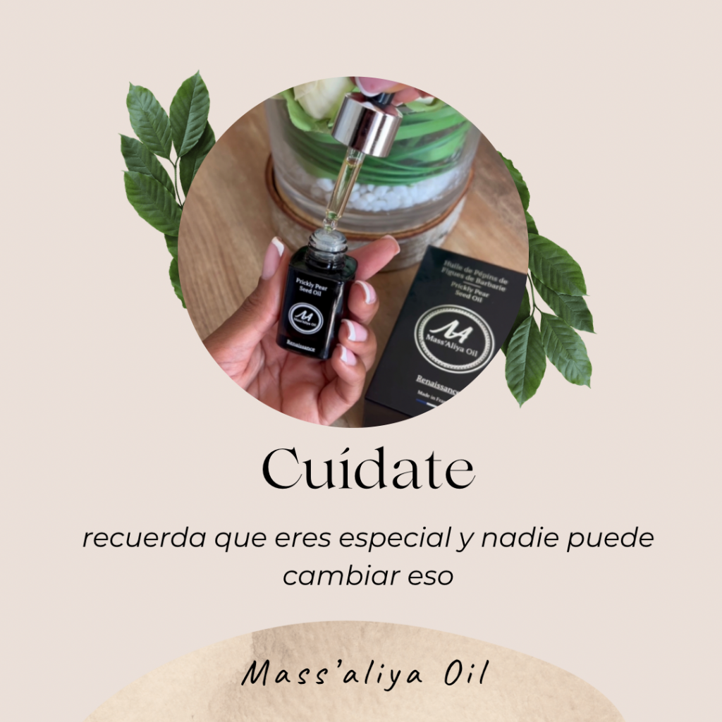 ¡Bienvenido a Mass’ Aliya Oil, una marca nacida de la pasión de una mujer franco-marroquí por la belleza natural! Nuestra fundadora, Salima, encuentra su inspiración en los tesoros de la naturaleza marroquí y francesa para crear productos cosméticos excepcionales, diseñados con cuidado y respeto por tu piel.