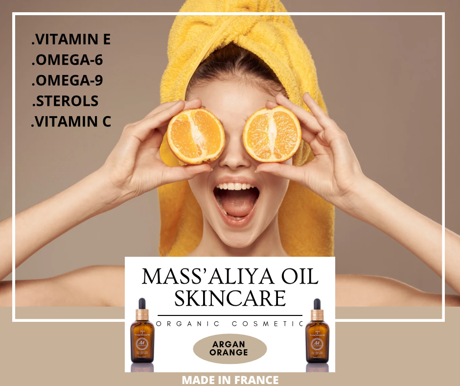 « Elíxir de Argán Dorado con Esencia de Naranja: Resplandor Natural Garantizado. Una fusión exquisita para una piel radiante y nutrida. El aceite de argán puro, combinado con un 2% de aceite esencial de naranja, ofrece una experiencia sensorial única. Regenere su piel suavemente y revele su esplendor natural. »